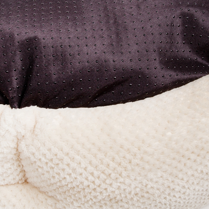Für zusätzliche Sicherheit sorgt die Anti-Rutsch-Unterseite, die das Bett auch auf glatten Böden zuverlässig an Ort und Stelle hält. So kann sich Ihr Hund sorglos ausstrecken und bewegen, ohne dass das Bett verrutscht.